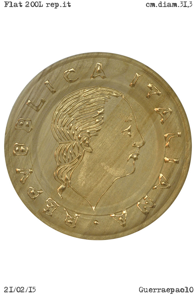 Erano nate dal concetto di decontestualizzarne la forma, nello stesso periodo in cui realizzavo ruote di bicicletta quadre e quadri che perdendo la forma, non erano più quadri… Terminato il periodo dello “sformato d’arte” ho continuato a realizzarle per la valenza estetica e simbolica che si ritrova in esse, del resto i soldi sono i mattoni che costituiscono la nostra società e lo sono da secoli!… ognuno con i soldi ha un rapporto differente: chi li accumula e chi li sperpera, chi li guadagna con fatica e chi non fatica a spenderli… qualunque sia il rapporto, tutti, comunque, lo abbiamo. Le monete, che dei soldi sono la parte meno cospicua, ce le ritroviamo in tasca, in macchina, su tavoli e se sono per terra ci chiniamo a raccoglierle, non sono mai incustodite, hanno sempre un “proprietario”, ci appartengono come è anche vero il contrario…